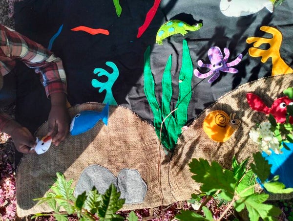 Les personnages ainsi que le tapis sont rembourrés avec de la ouatine, assurant une douceur et un confort supplémentaires. L'histoire est fournie avec le tapis, écrite et plastifiée.